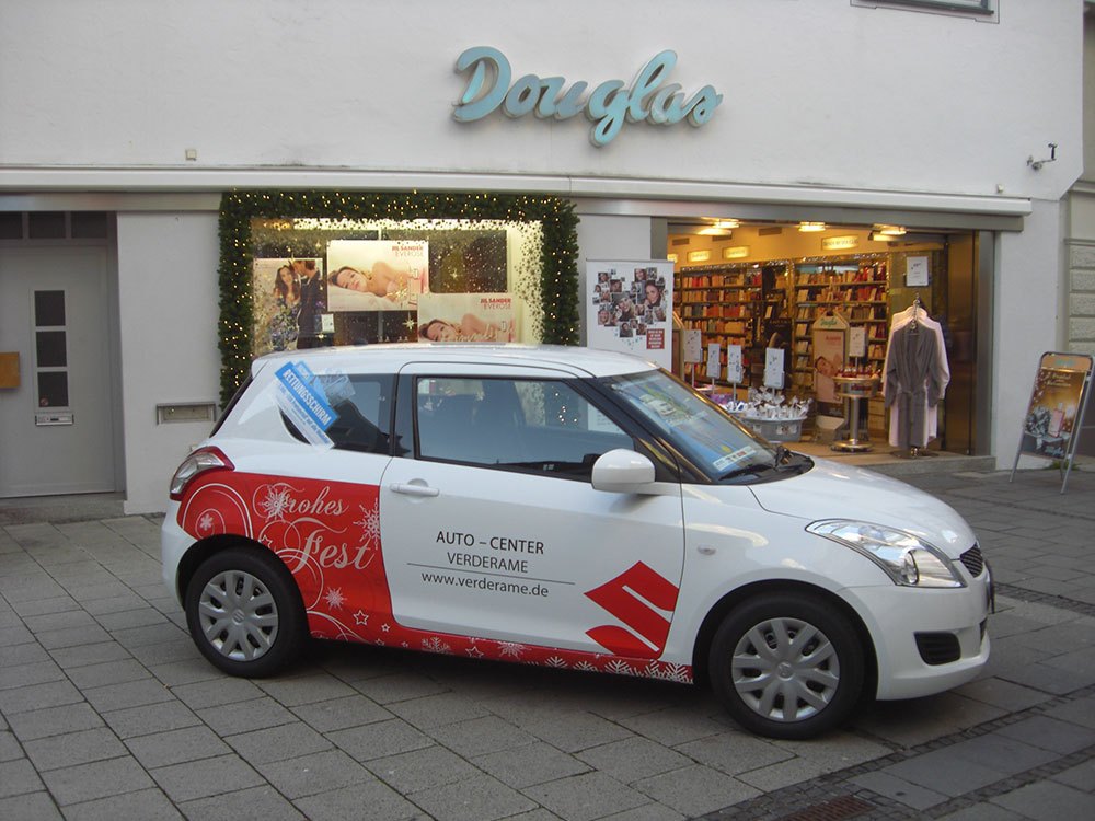 Verwandeln Sie Ihre Flotte in eine mobile Werbefläche mit individueller Fahrzeugbeklebung. Unsere maßgeschneiderten Lösungen ermöglichen es Ihnen, Ihre Marke und Botschaft effektiv zu präsentieren. Mit hochwertigen Materialien und präziser Anbringungstechnik gewährleisten wir eine langlebige und qualitativ hochwertige Fahrzeugbeklebung, die Ihr Fahrzeug zum Blickfang auf den Straßen macht. Nutzen Sie die Vorteile der Fahrzeugbeklebung, um Ihre Sichtbarkeit zu erhöhen, potenzielle Kunden anzusprechen und Ihren Firmennamen in Erinnerung zu behalten. Vertrauen Sie auf unsere Erfahrung und lassen Sie uns gemeinsam Ihre Fahrzeugbeklebung zum Erfolg führen.